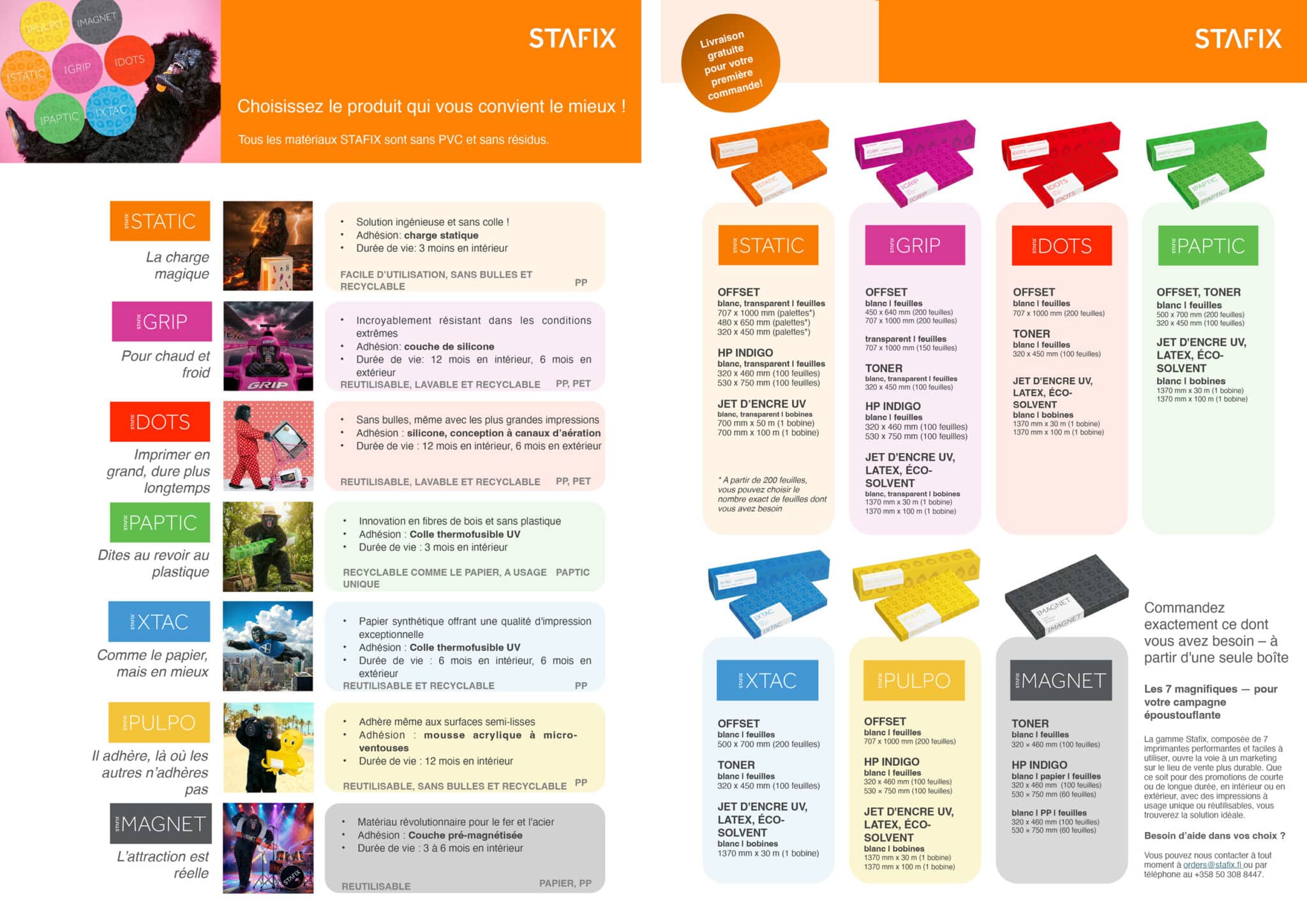Commandez notre pochette gratuit d’échantillons et découvrez des PLV auto-adhésives. Les produits Stafix ont été développés pour dynamiser vos campagnes.